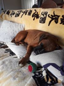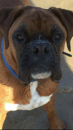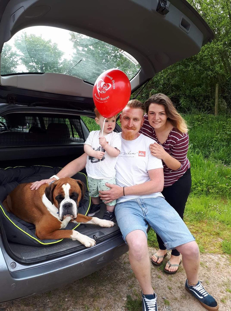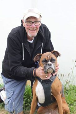 "Bruno came to us on the 31st of July 2017, at first, he was reluctant to make friends with anyone. However, after three weeks and some hard work by myself, Jean, and my dog friends he began to enjoy life. His favourite walk was on the beach, he would spend all day in the water chasing skimmed stones if I let him. With his friends, Dylan, Mabel, Polly, Bramble, and Gracie he enjoyed his trips to the beach to play. At home, Bruno enjoyed playing football with myself and my great grandchildren, Ben and Jasmine, and having many cuddles on the couch with us. At our two visits to the Cornwall and South Devon Boxer Rescue yearly dog show, Bruno amassed four rosettes and we were very proud of our boy. Bruno was a big daft lad who loved his cuddles, the beach, and meeting other dogs/people. On December 3rd after a very short illness Bruno had a heart attack and passed over with myself and my wife at his side. We only had our wonderful boy in our lives for 17 months, but we loved every minute with him and would like to think he felt the same with us." - John Bell